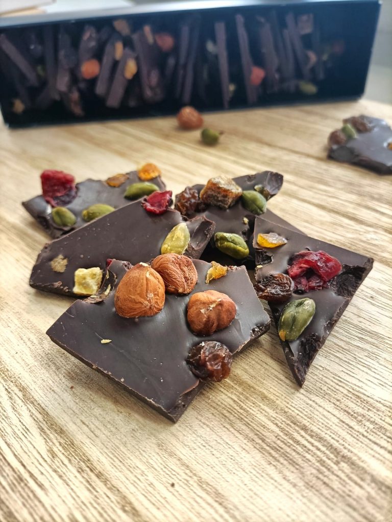 Vous retrouverez dans notre boutique une large gamme de produits à base de chocolat noir, chocolat au lait ou chocolat blanc : tablette, mendiant, rocher, bonbon… Nous apportons de la modernité à ses grandes classiques avec un mélange de saveurs équilibrés tout en respectant les traditions.